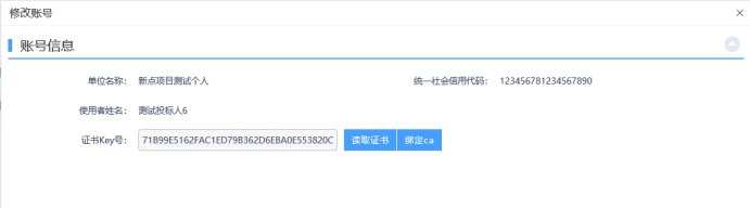 3.2.2 进入CA激活页,然后点击“修改信息”按钮进入CA绑定页面: